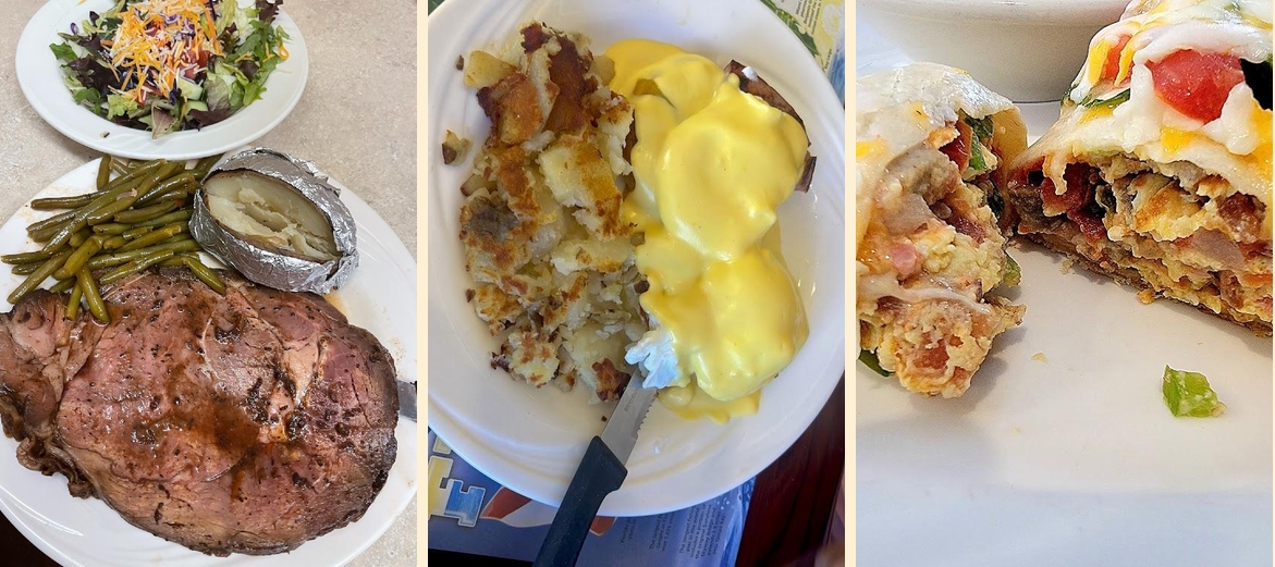 The must-try dishes include the Cheese Quesadilla, 8 Oz Ribeye, and Chicken Cordon Bleu. For breakfast, the Huevos Ranchero is popular. Desserts and local specialties are also worth tasting.